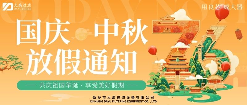 尊敬的客戶及合作伙伴:秋風(fēng)送爽,丹桂飄香。值此國慶與中秋雙節(jié)來臨之際,謹(jǐn)向您及家人致以zui誠摯的節(jié)日祝福!根據(jù)國家法定節(jié)假日安排,結(jié)合公司實(shí)際情況,現(xiàn)將2025年國慶+中秋雙節(jié)放假安排及相關(guān)事項(xiàng)通知如下:一、放假時(shí)間2025年10月1日(星期三)至10月6日(星期一),共計(jì)6天。10月7日(星期二)起正常上班。9月28日(周日)、10月12日(周日)補(bǔ)班。二、業(yè)務(wù)服務(wù)說明放假期間,公司線上咨詢通道保持暢通。銷售人員將不定期查看并回復(fù)您的咨詢,但受假期影響,可能存在回復(fù)延遲的情況,敬請諒解。如遇緊急事項(xiàng),您可撥打以下熱線:王經(jīng)理13613905650;李經(jīng)理13839073363,我們將竭誠為您服務(wù)。三、生產(chǎn)安排提醒因車間節(jié)前生產(chǎn)訂單已排滿,為確保假期前后生產(chǎn)質(zhì)量與效率,放假期間(10月1日至10月6日)將暫停安排新生產(chǎn)訂單生產(chǎn)。節(jié)前已下單的訂單將按原計(jì)劃正常推進(jìn),放假期間新接訂單將統(tǒng)一順延至10月7日復(fù)工后,按序安排生產(chǎn)。由此帶來的不便,我們深表歉意,感謝您的理解與支持。四、溫馨提示假期出行請注意安全,做好個(gè)人防護(hù)。公司官網(wǎng)及社交媒體平臺將持續(xù)更新節(jié)日動(dòng)態(tài)及服務(wù)資訊,歡迎隨時(shí)關(guān)注。佳節(jié)共團(tuán)圓,服務(wù)不間斷。值此雙節(jié)同慶的美好時(shí)刻,衷心感謝您長期以來對我司的信任與支持!我們期待在節(jié)后以更飽滿的熱情、更優(yōu).質(zhì)的服務(wù)與您攜手同行,共啟新程!此致敬禮!新鄉(xiāng)市大禹過濾設(shè)備有限公司2025年9月28日